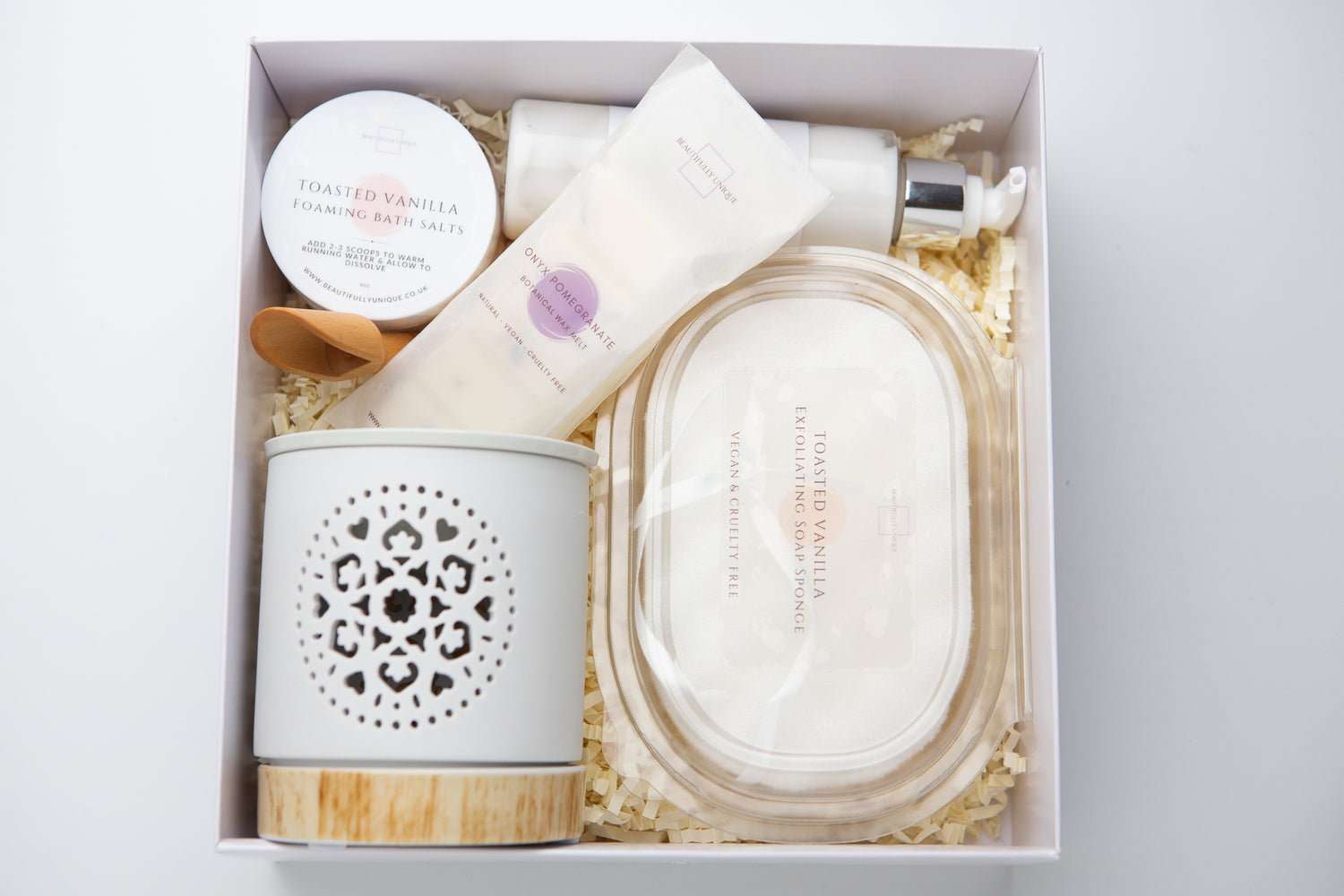 Unwind with our Pamper Box Sets, filled with bath and body treats...